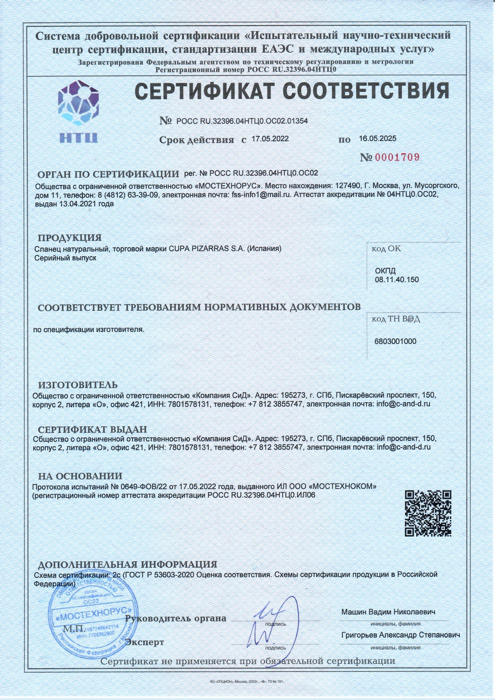Сертификаты продукции