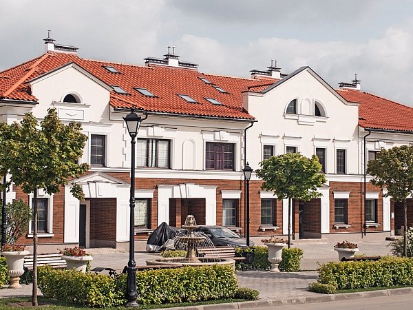 Черепица имеет классический дизайн, который гармонично вписывается в любой архитектурный стиль. Ее натуральный красный цвет придает зданию элегантность и уют.