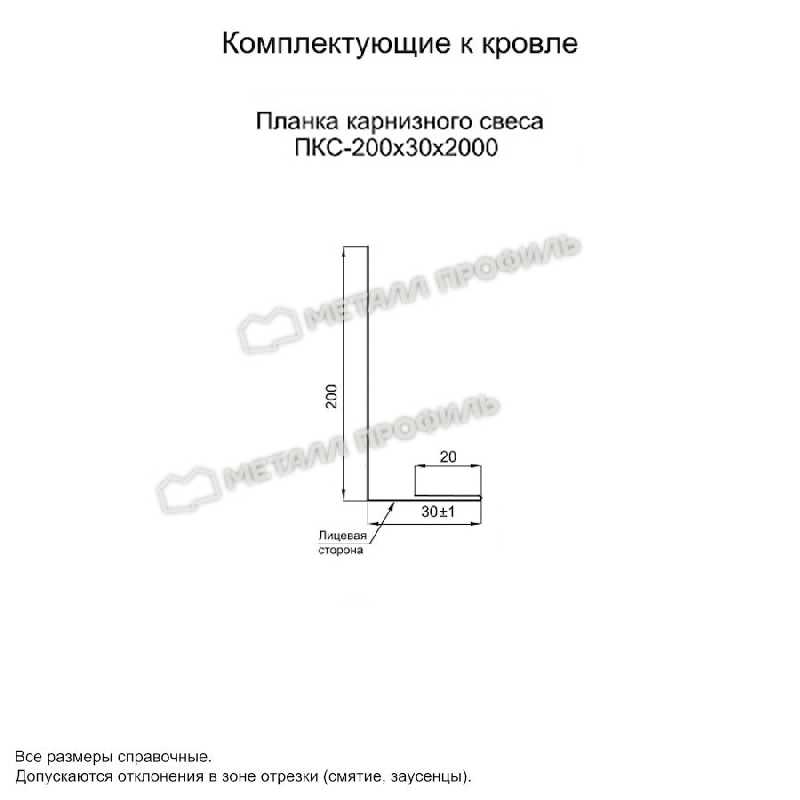 • Планка карнизного свеса 200х30х2000 NormanMP (ПЭ-01-1014-0.5) не ржавеет.