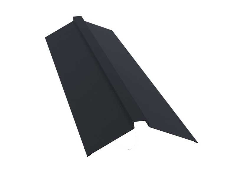 Планка конька плоского Grand Line 115х30х115 0,5 GreenCoat Pural BT, matt RR 23 темно-серый (RAL 7024 мокрый асфальт)