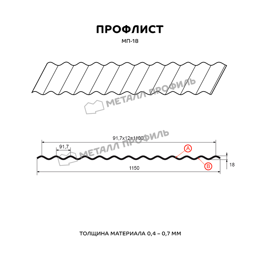 Этот профлист изготовлен из высококачественного металла и имеет профиль МП-18. Толщина листа составляет 0,5 мм, что обеспечивает прочность и долговечность изделия.