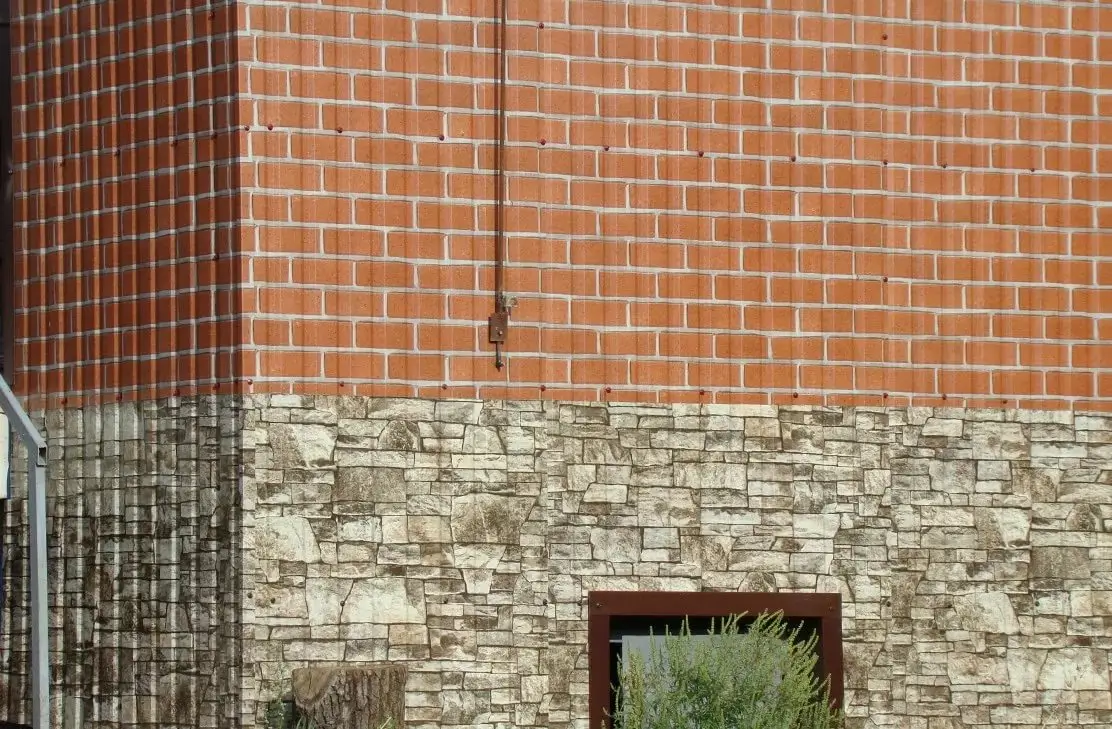 Профиль МП-20 имеет толщину 0,5 мм, что обеспечивает прочность и долговечность изделия. Он выполнен в стильном кирпичном дизайне, который придает зданию элегантный и современный вид.