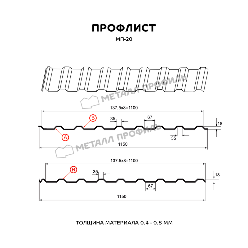 Профлист Металл-Профиль МП-20 ECOSTEEL® 0.5 мм Сосна - это качественный и надежный материал для строительства и отделки различных объектов. Он изготовлен из высококачественной стали толщиной 0.5 мм, что обеспечивает ему прочность и долговечность.