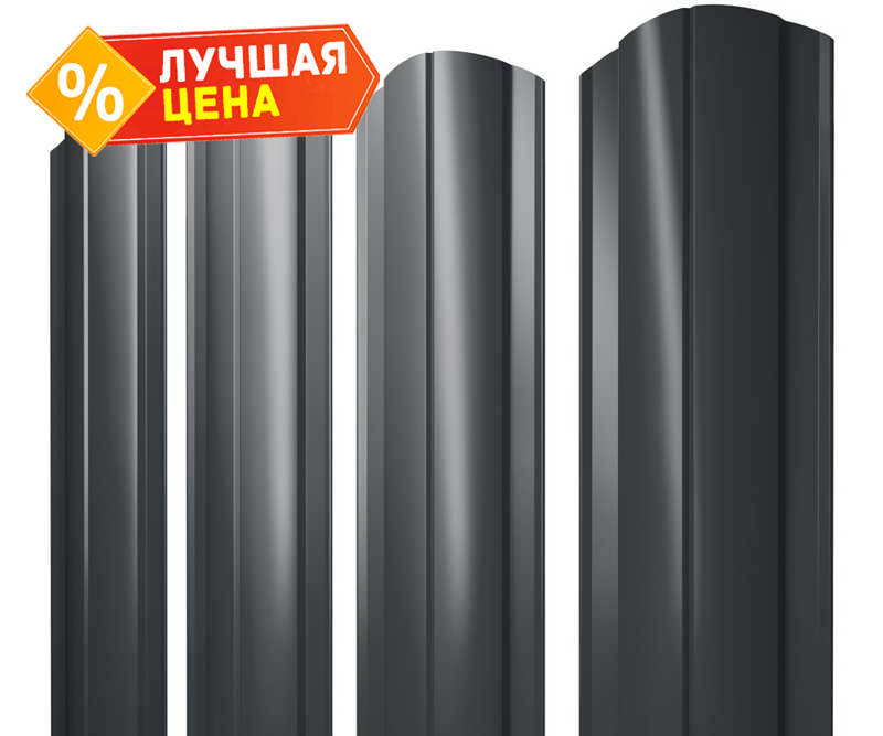 Штакетник Круглый фигурный Grand Line 0,45 Drap ST RAL7016 Антрацитово-Серый