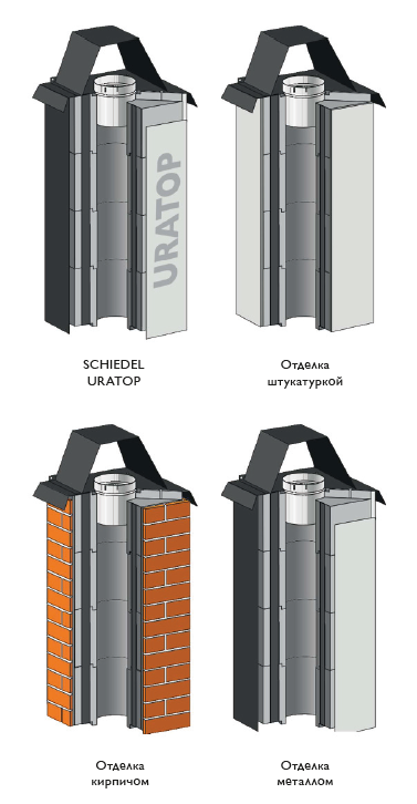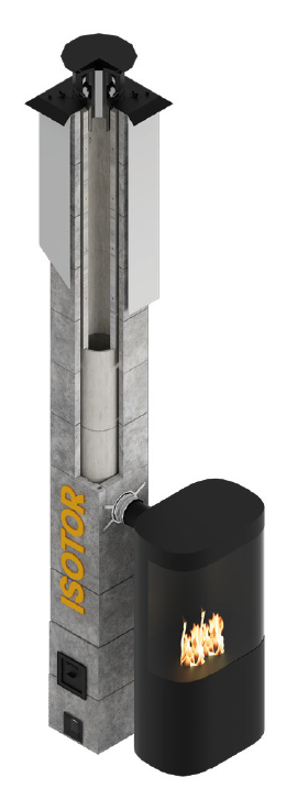 Модульный комплект дымохода ISOTOR, 0,33м., с дефлектором, без вентканала, диаметр 16 см, Schiedel